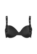 Aisa Padded Wired toppen i sort er en super sød top med et sporty look. Den er polstret og lavet af mikrofiber. Det, der gør denne top så speciel, er stropperne med metaløjer og en spænde.