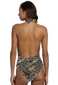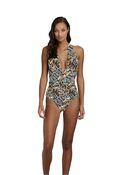 Denne Cotys halter badedragt er med animal print . Den har en haltermodel. Den sidder tæt omkring hofterne og fremhæver figuren smukt.