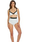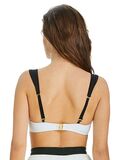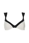 Denne bikinitop er lavet i en kombination af sort og hvid. Det er en bikinitop uden polstring. Eva-bikinitoppen har tykkere stropper for mere støtte. Denne top har også et sjovt sort-hvidt print.