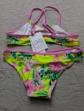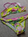 Sødt flower bikini-sæt til pige i str. 140 cm (ca. 9–10 år) med fint blomstermønster, perfekt til sommerdage ved strand og pool.