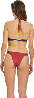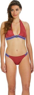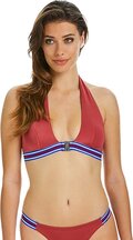 Hvis du leder efter en halterneck-top, der både er sporty og behagelig, så er Nona halterneck-toppen i hvid perfekt til dig! Toppen har en elastik med et stribet mønster forneden. Toppen sidder også behageligt, da den er lavet af mikrostof. Matchende bikinitrusser fås for at fuldende dette sporty look!