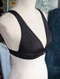 Stilfuld trekantsbikinitop fra Sapph by Faya-kollektionen. Toppen fås i sort, og stoffet har en diskret glans. Den har en guldfarvet lukning. Kombiner denne bikinitop med den matchende Living Lightning Brazilian!